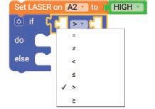 3. Drag the if block from the LOGIC category and drop it below the Set LASER on block.