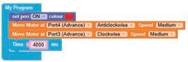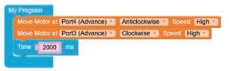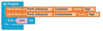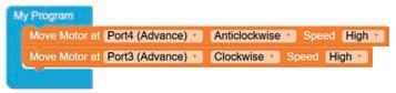 • Similarly, to turn the bot backwards, configure the motor at Port4 as Clockwise and Port3 as Anticlockwise by making the respective selections from the drop-down menus.