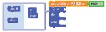 2. Drag the HIGH block from the OUTPUT category and attach it to the Set LASER on block.