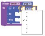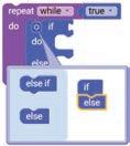 3. Drag the if block from the LOGIC ategory and drop it inside the repeat while block.