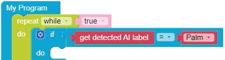 11. Drag the HIGH block from the LIGHTS category and attach it to the Set LED on block.
