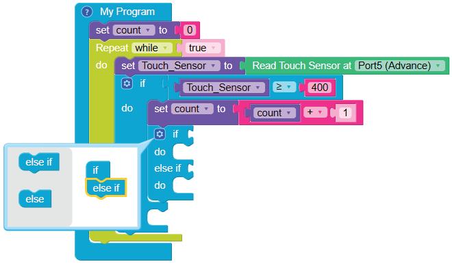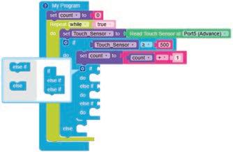 12. Similarly, drag another Set LED on block and drop it in the else part of the if block. Select ‘8’ from the drop-down menu of the block.