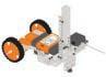 Mechanical parts are like the bones and muscles of a robot. They include wheels, gears, motors, and arms. These parts help the robot move, pick up things, or spin. For example, wheels let a robot roll around, and motors make robots move by turning wheels, spinning gears, or lifting arms.
