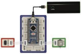 • Connect the Power bank to the brain module using a USB cable to supply power.