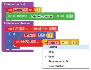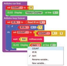 21. Now, drag and drop the item variable block inside the empty part of the OLED Display block. Select the ‘COUNT’ option from the drop-down of the item block.