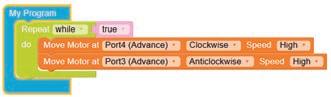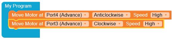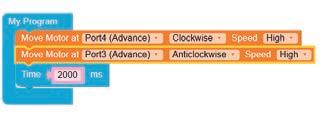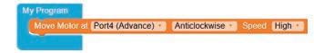 • Configure the motor at Port4 (Advance) as anticlockwise by selecting the Anticlockwise option from the drop-down.