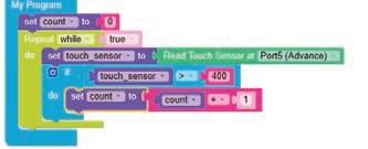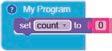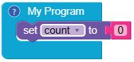 6. Drag the number block from the MATH category and attach it to the Set COUNT to block. This block is set to ‘0’ by default.
