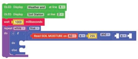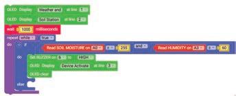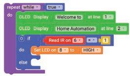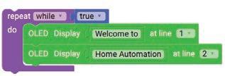 19. Drag the OLED Display block from the OUTPUT category and drop it below the wait milliseconds block. Select ‘2’ for line from the drop-down of the block.