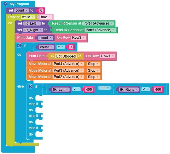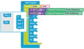 10. Drag the if block from the LOGIC category and drop it below the set IR IN to block.