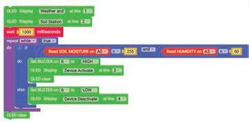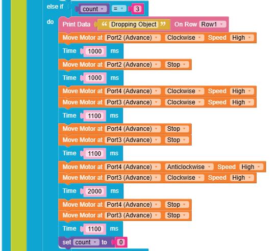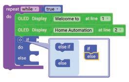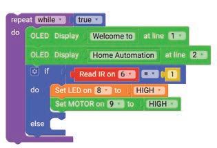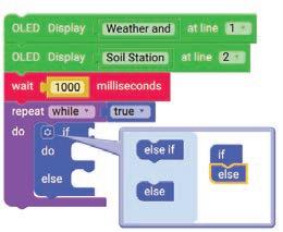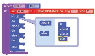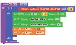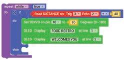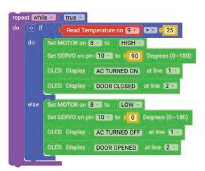 11. Similarly, drag another Set SERVO on pin block and drop it in the else part of the if block. Select ‘10’ for the pin from the drop-down and type ‘0’ in the text part of the block for degrees.