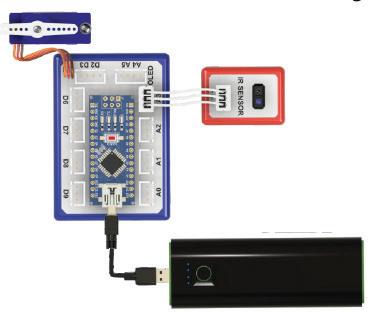 1 The IR sensor is connected to pin of the brain module.