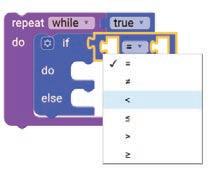 7. Select ‘<’ (less than) operator from the drop-down of the if block.