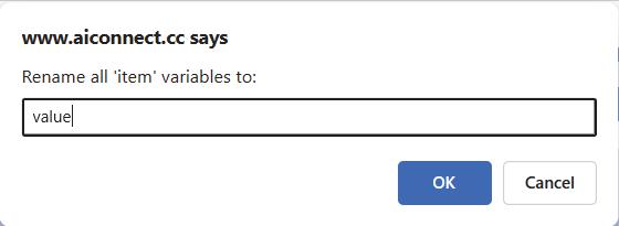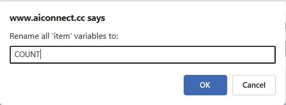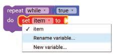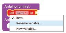 3. From the item drop-down of the set item to block, select the Rename variable option.