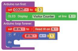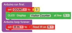 7. Drag the OLED Display block from the OUTPUT category and drop it below the Set COUNT to block.