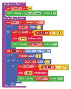 2 Rahul accidentally presses the push button twice and reduces the count. How can the OLED display help him check the correct number of visitors again?