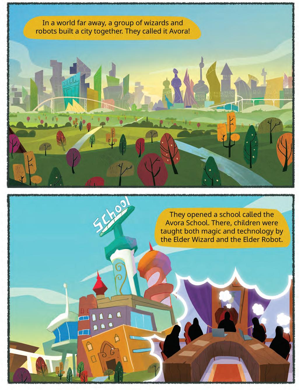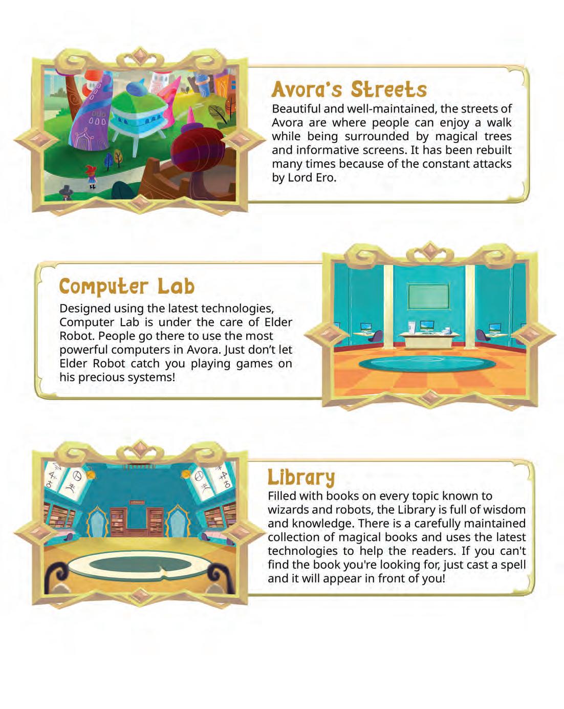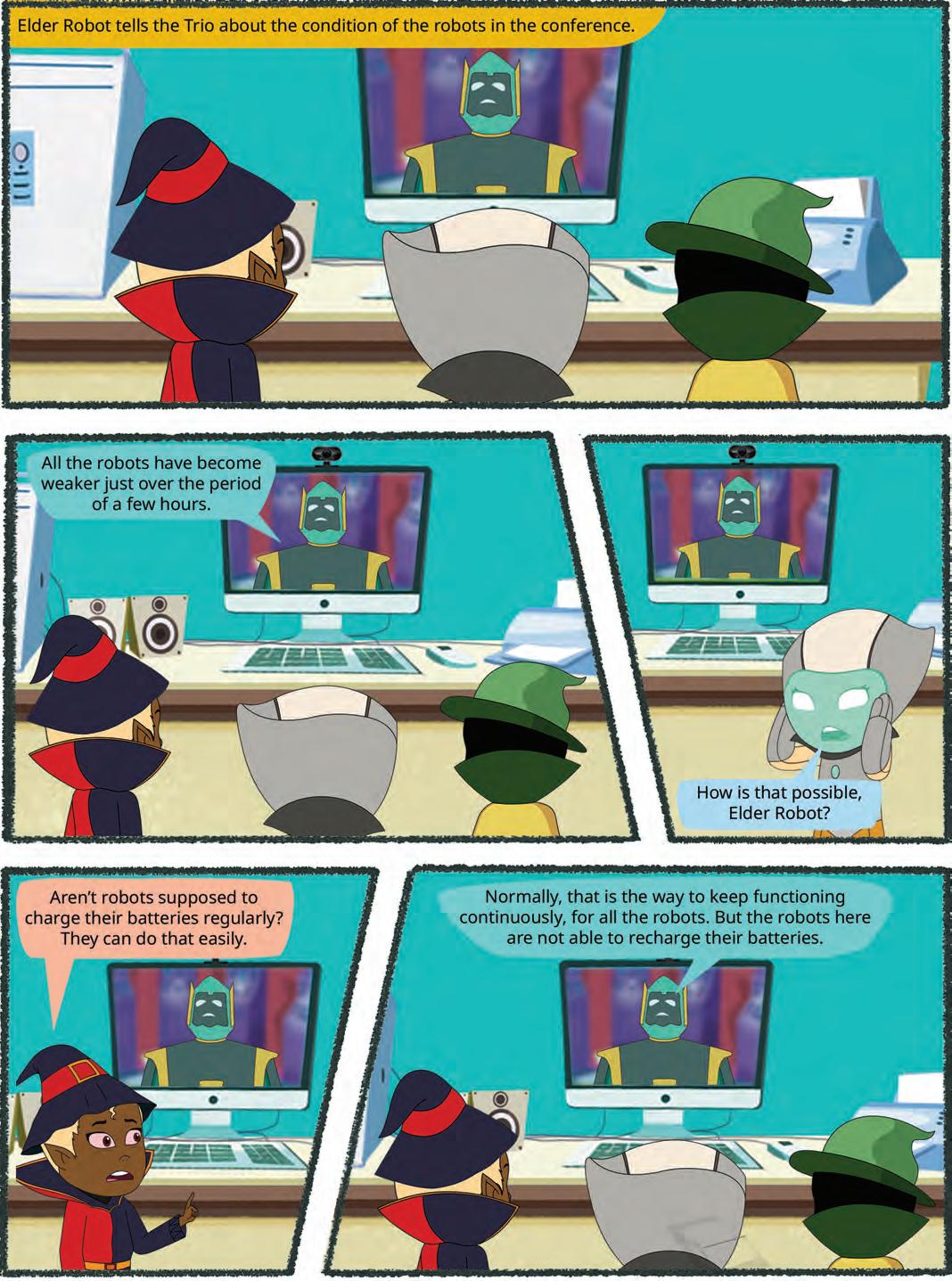 In every grade, students embark on an immersive experience in the “Adventures of Mel and Conji”. Within each chapter, in the initial section (Section A), the story unfolds, enveloping learners in an exciting journey. Through the story, students actively connect with fundamental concepts in the realm of Computer Science.