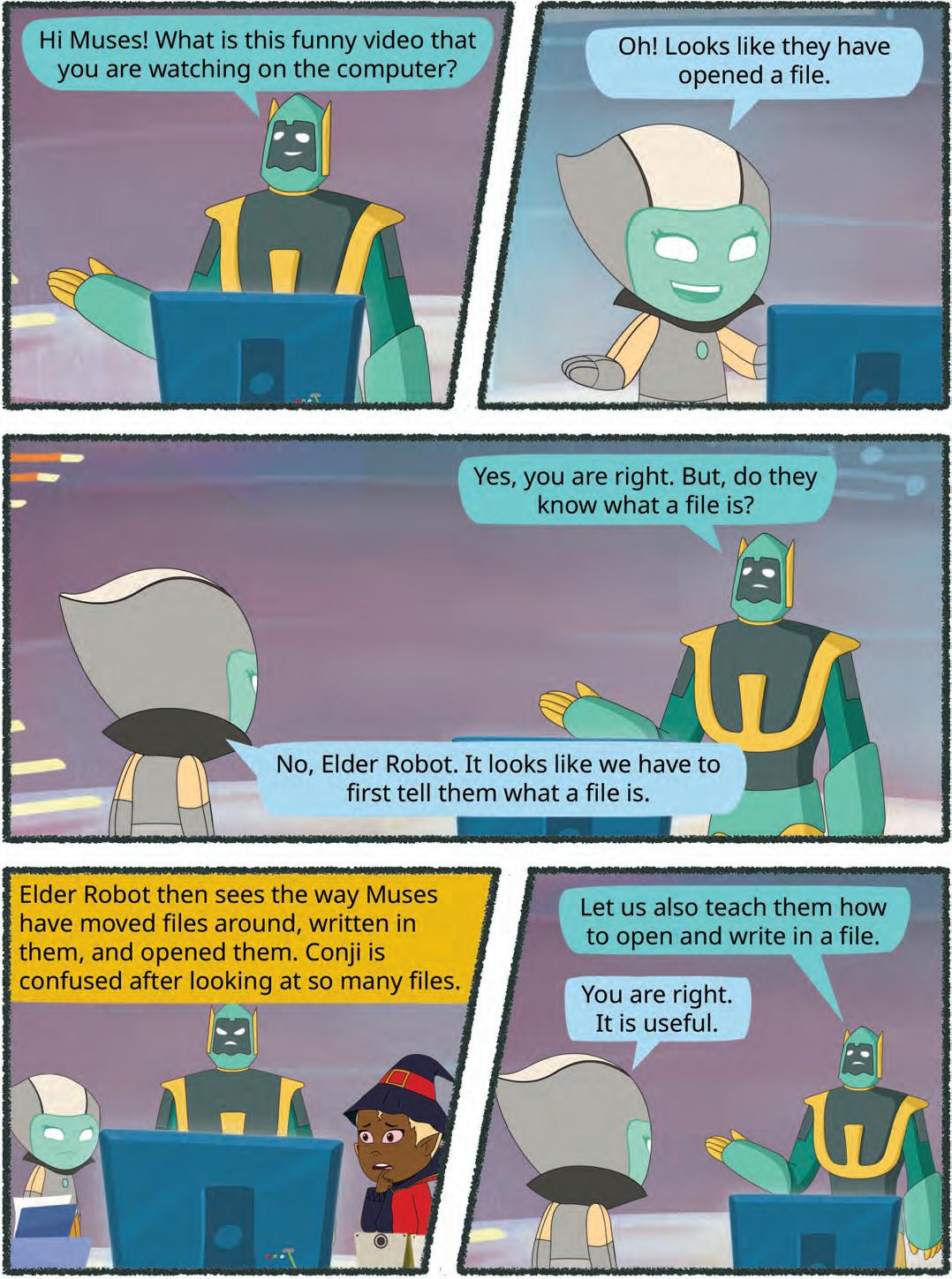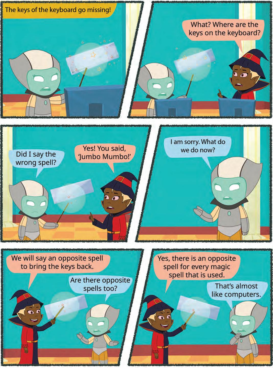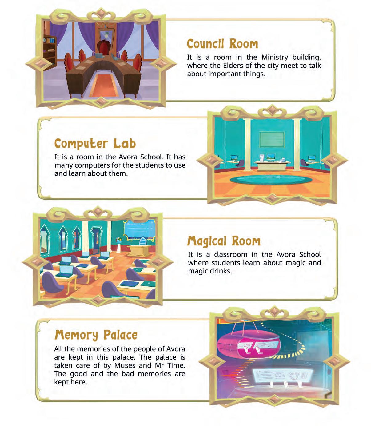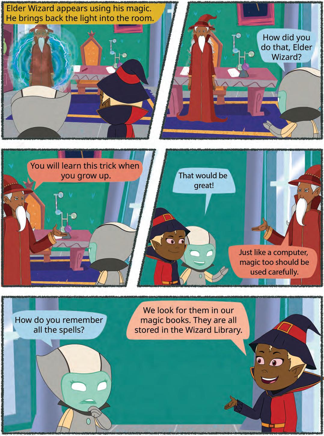 In every grade, students embark on an immersive experience in the “Adventures of Mel and Conji”. Within each chapter, in the initial section (Section A), the story unfolds, enveloping learners in an exciting journey. Through the story, students actively connect with fundamental concepts in the realm of Computer Science.