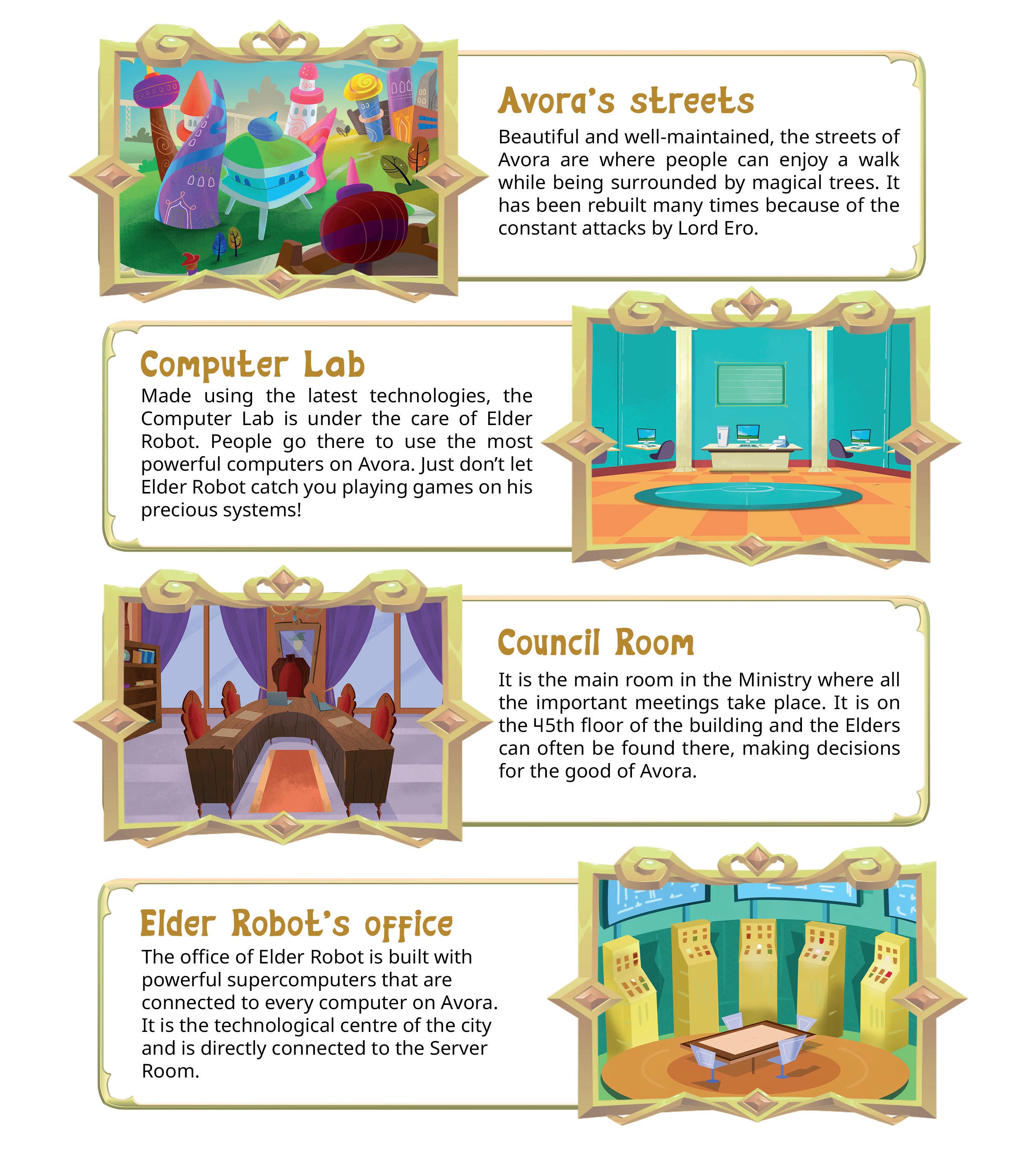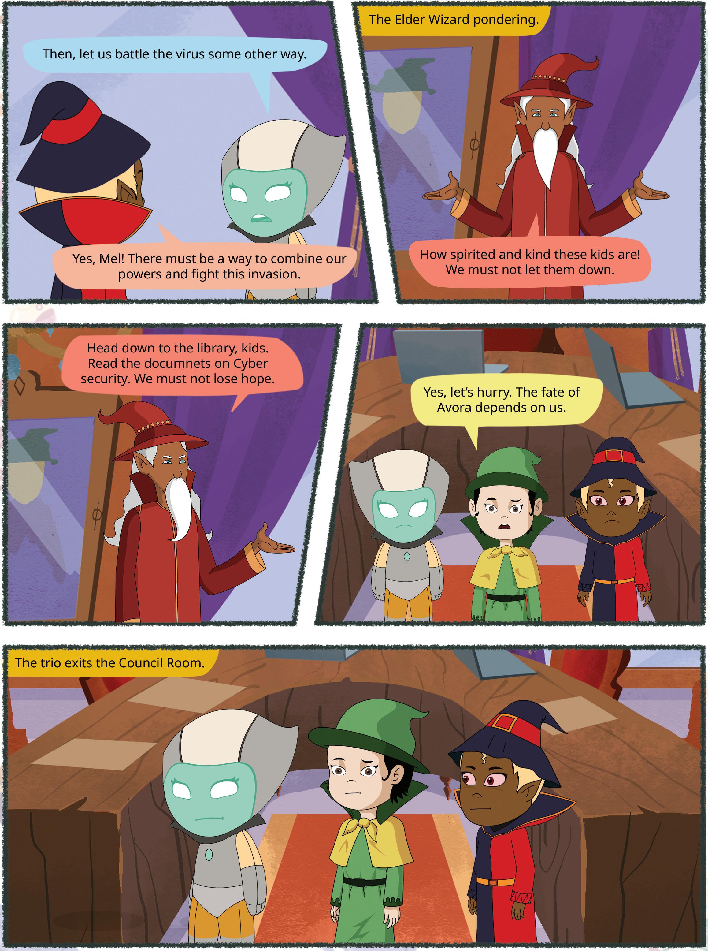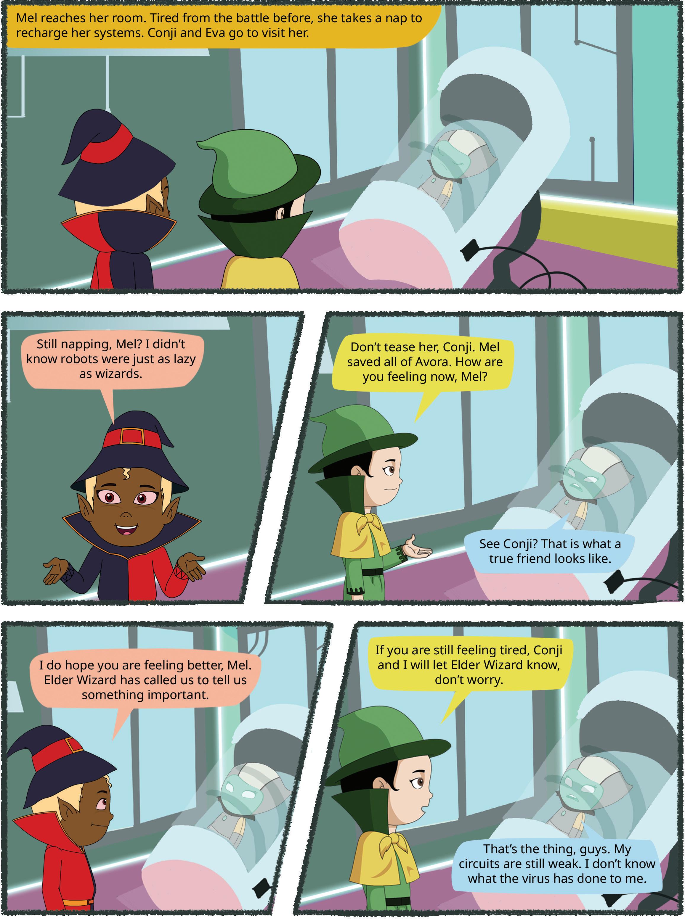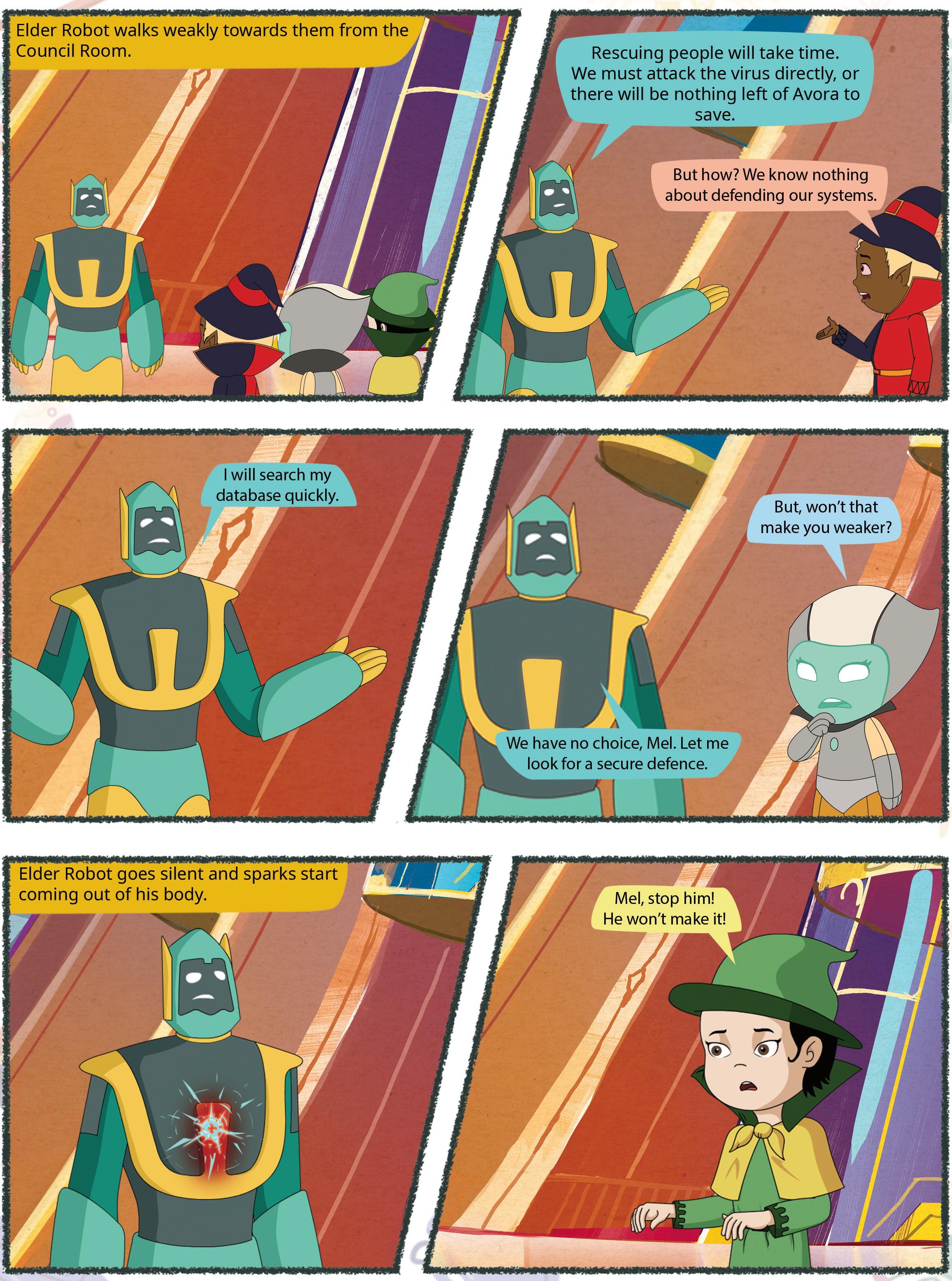In every grade, students embark on an immersive experience in the “Adventures of Mel and Conji”. Within each chapter, in the initial section (Section A), the story unfolds, enveloping learners in an exciting journey. Through the story, students actively connect with fundamental concepts in the realm of Computer Science.