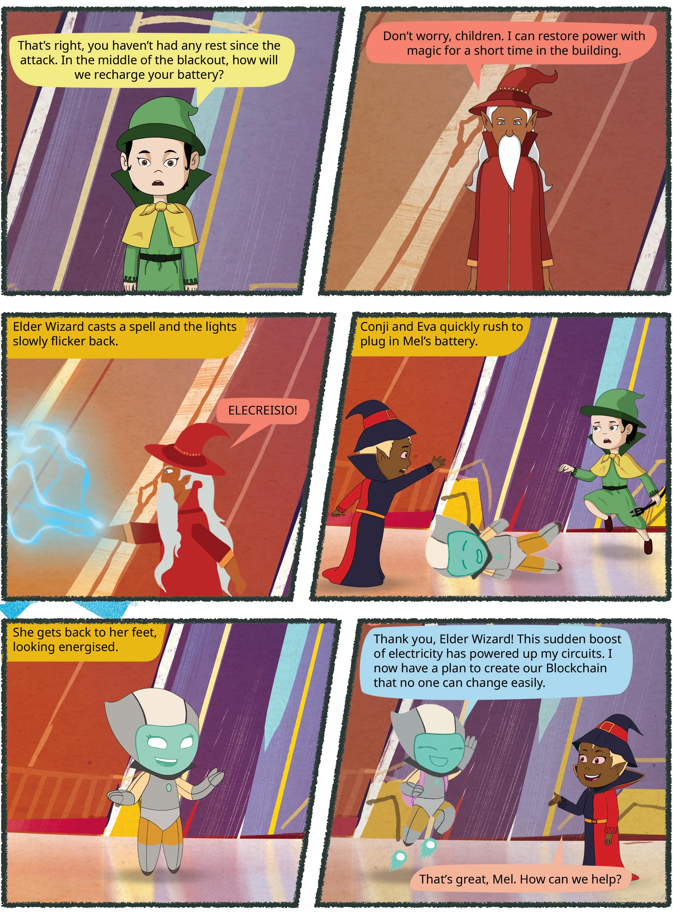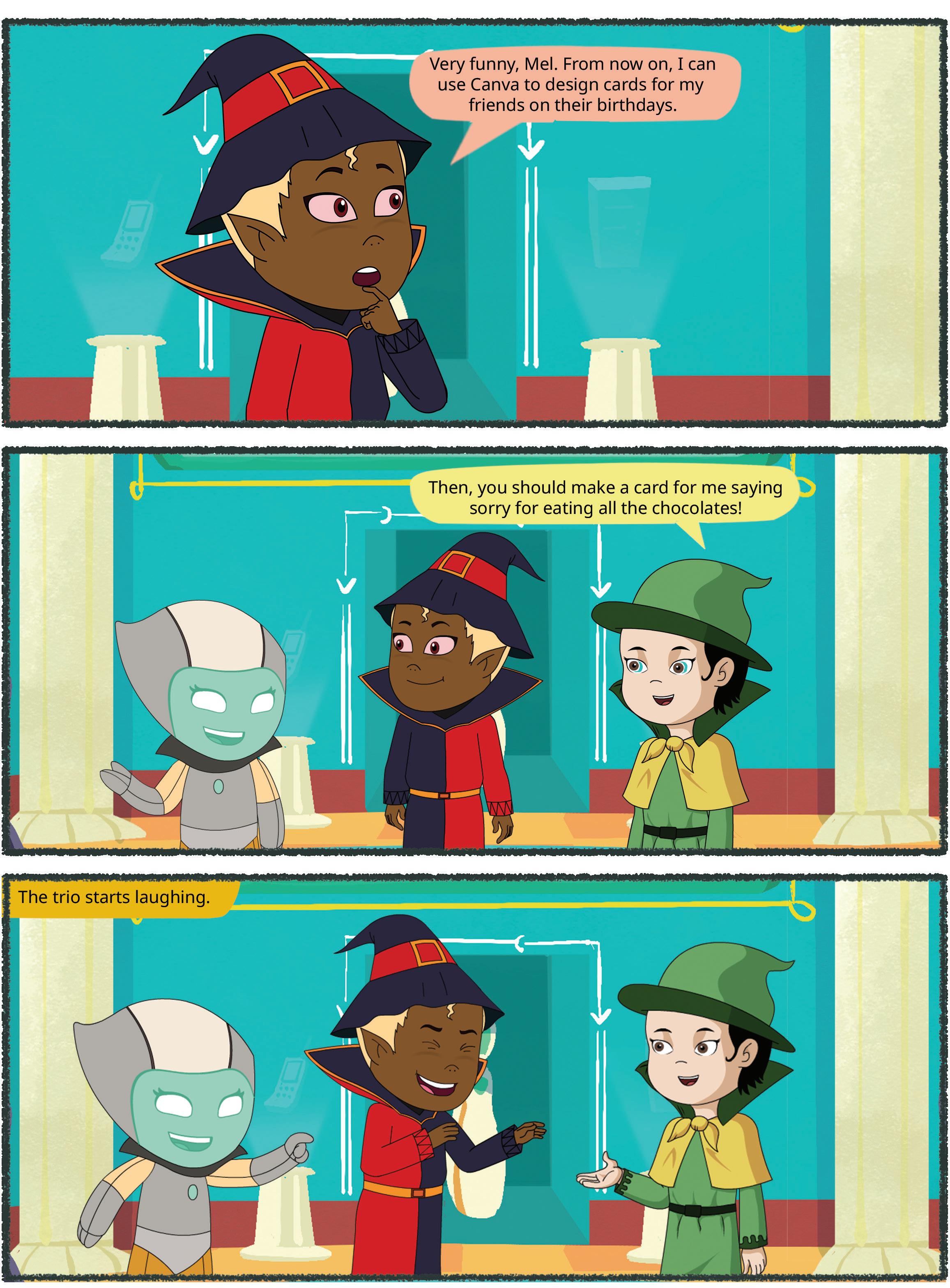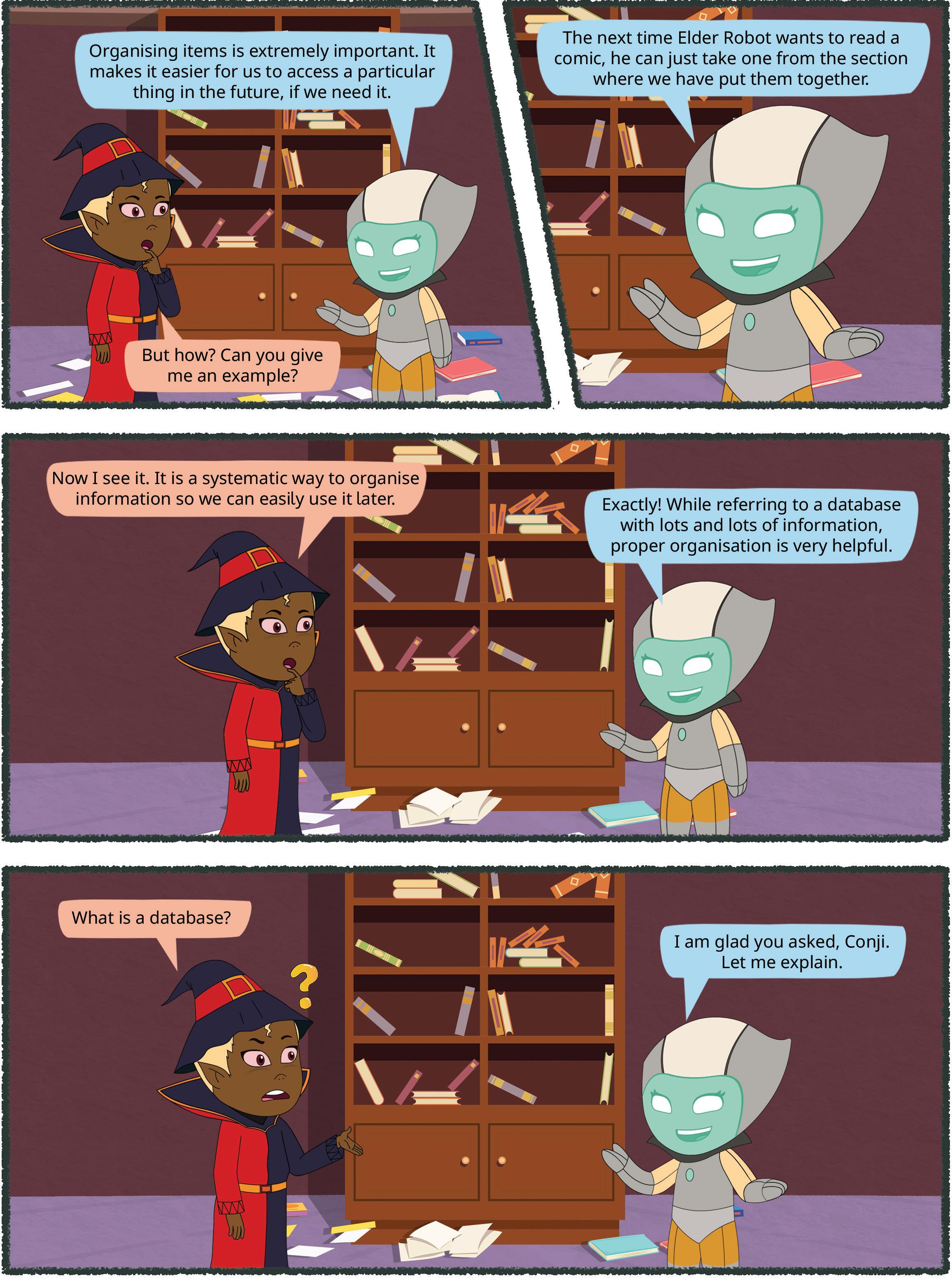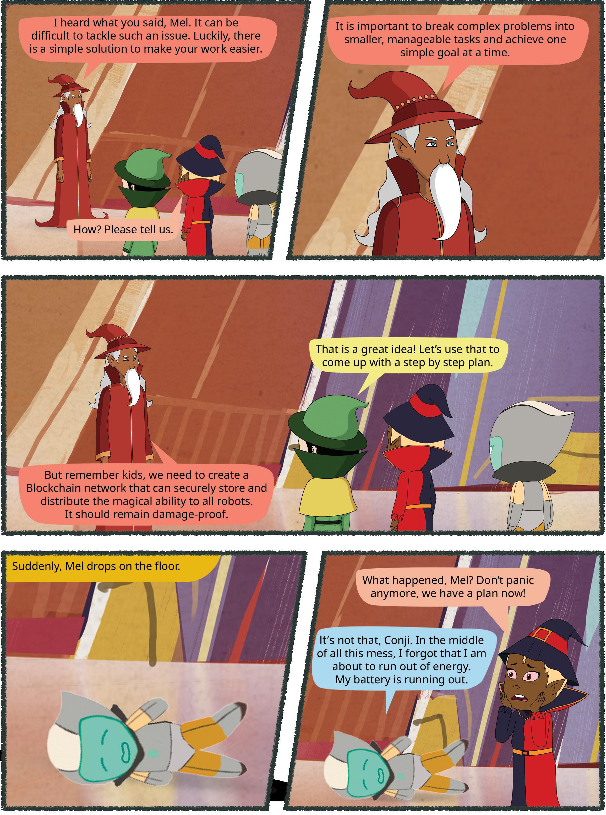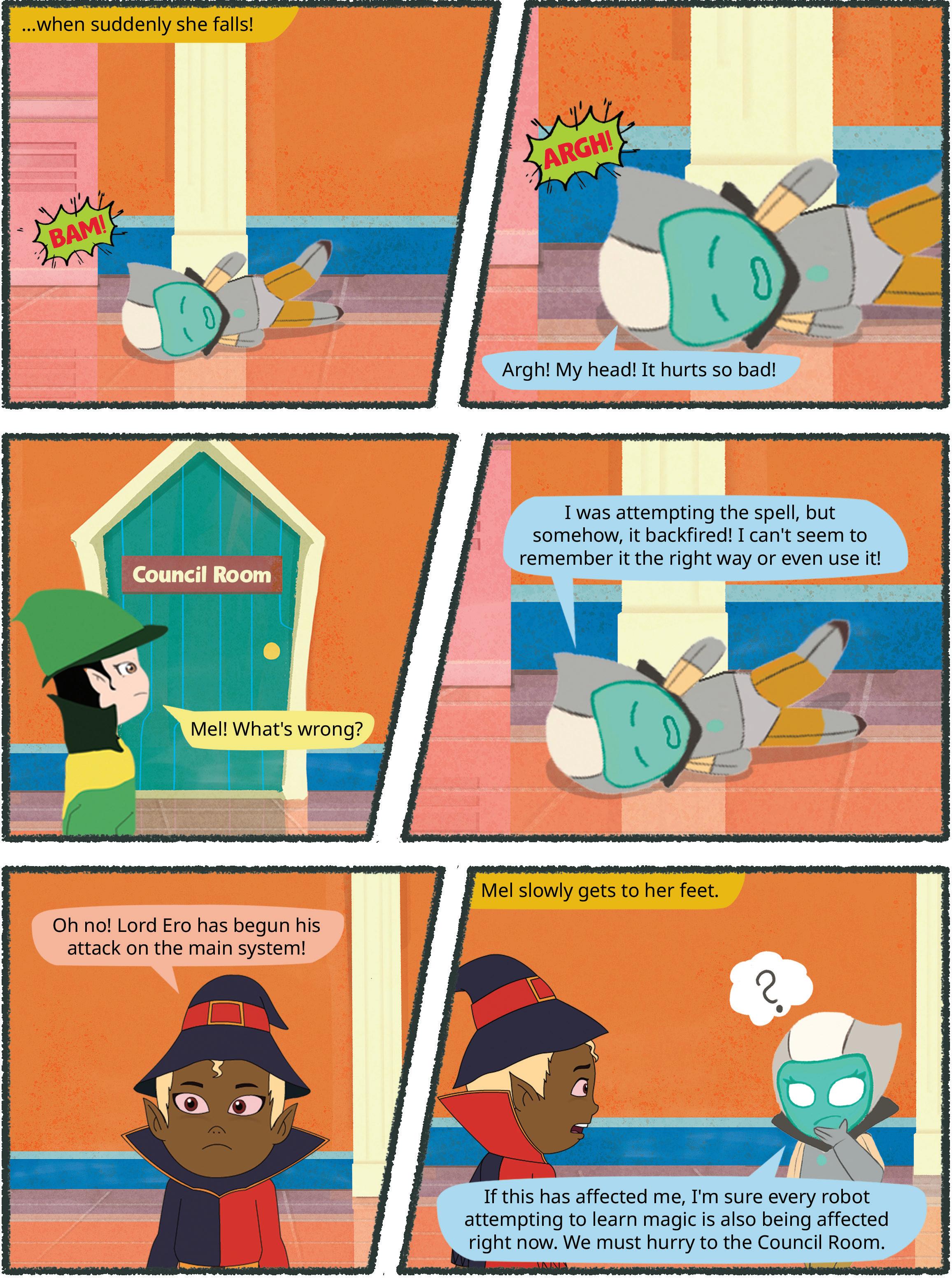In every grade, students embark on an immersive experience in the “Adventures of Mel and Conji”. Within each chapter, in the initial section (Section A), the story unfolds, enveloping learners in an exciting journey. Through the story, students actively connect with fundamental concepts in the realm of Computer Science.