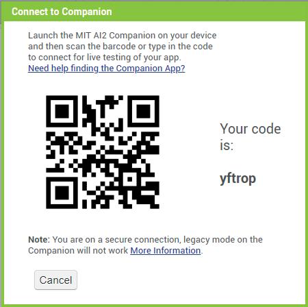 You can scan this QR Code to get the MIT AI2 Companion App on your mobile phone.