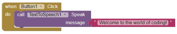 You will be able to hear the message that you have provided in the app code, that is “Welcome to the world of coding!”