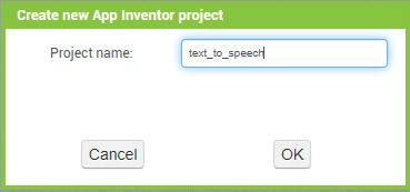 Give an appropriate name to your project, for example, text_to_speech and click on OK.