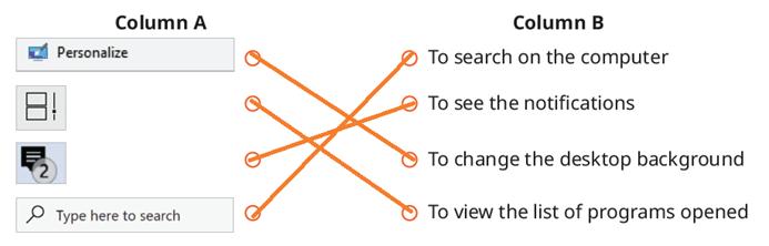 Describe to them the steps for creating a file and a folder to the students, as given on pages 56 and 57. Also, explain the term icon, which is an image on the computer screen that represents a file or a folder.