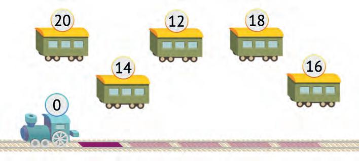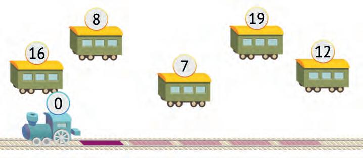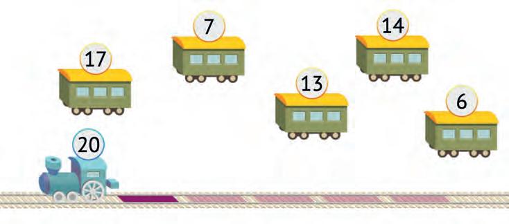 18. Draw arrows to put the train coaches in order. Largest number first!