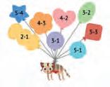9. Fill in the missing numbers on the balloons. One is done for you.