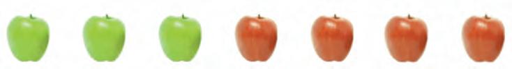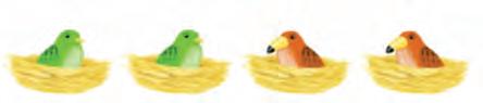 3 cats, 4 mice, 2 frogs 2 candies, 3 cakes, 4 fruits 3 bunnies, 3 foxes, 3 wolves