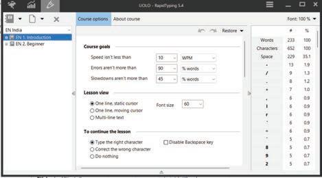 Advanced Course – By entering actual text, the user can practice their typing skills with the help of this course.