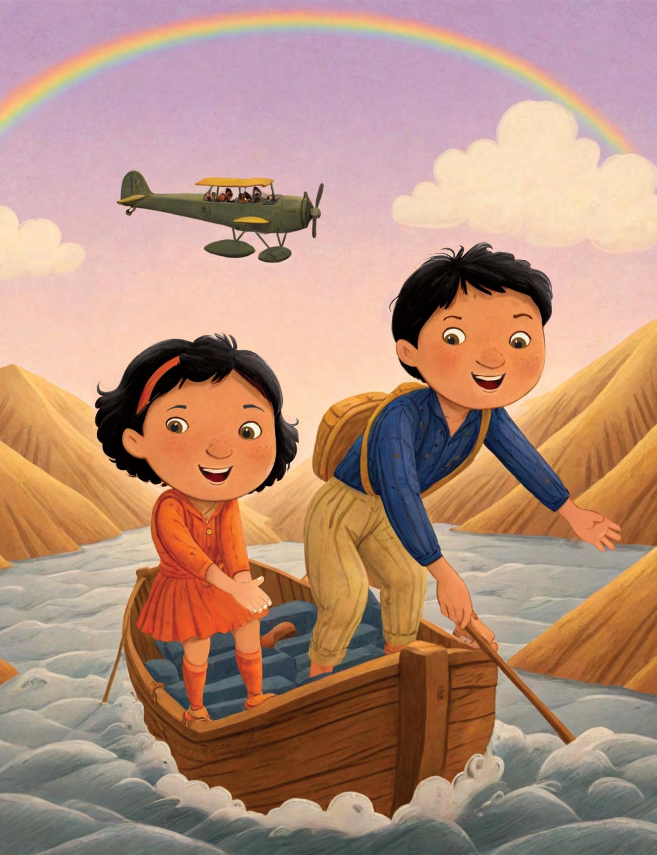 I can fly in a plane. I can ride in a train. In a boat, I can row. I can go, go, go! I can go near and far In a bus or a car. I can go anywhere. Without any fear!