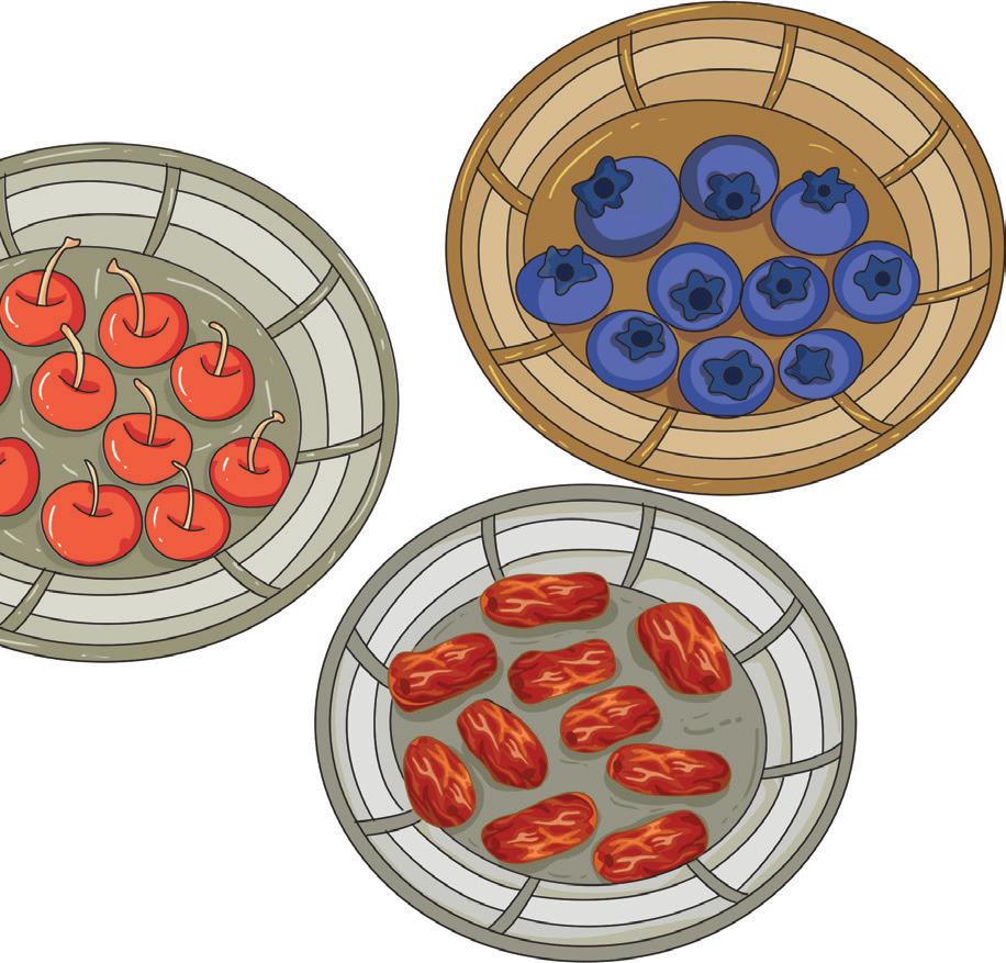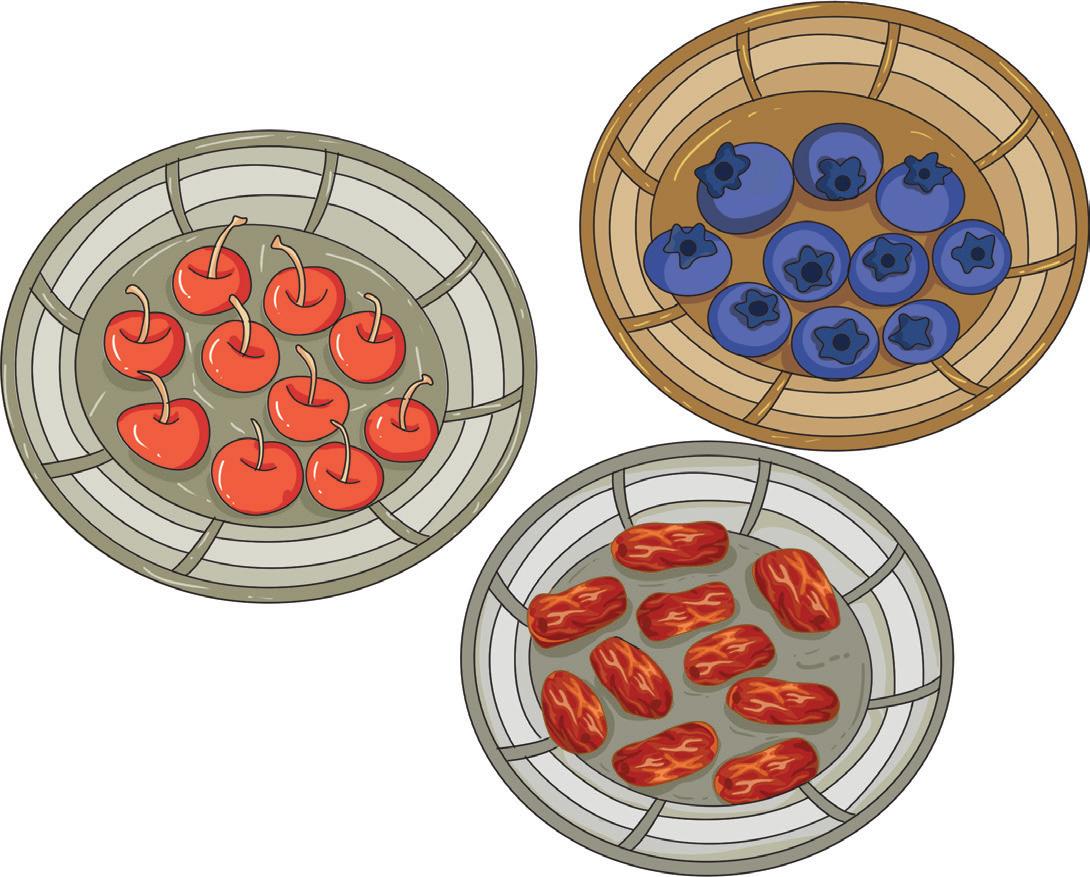 Write the ordinal number of the coloured fruit in each set. 2nd th st rd th
