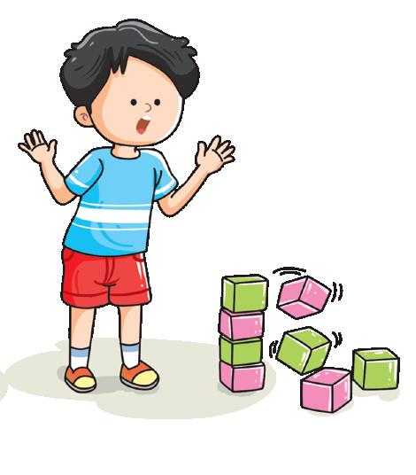 A boy is making a pile of 8 blocks.