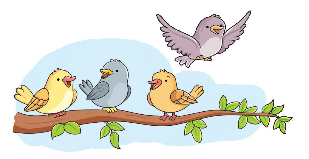 Four birds are sitting on a branch. One bird flies away. How many are left?