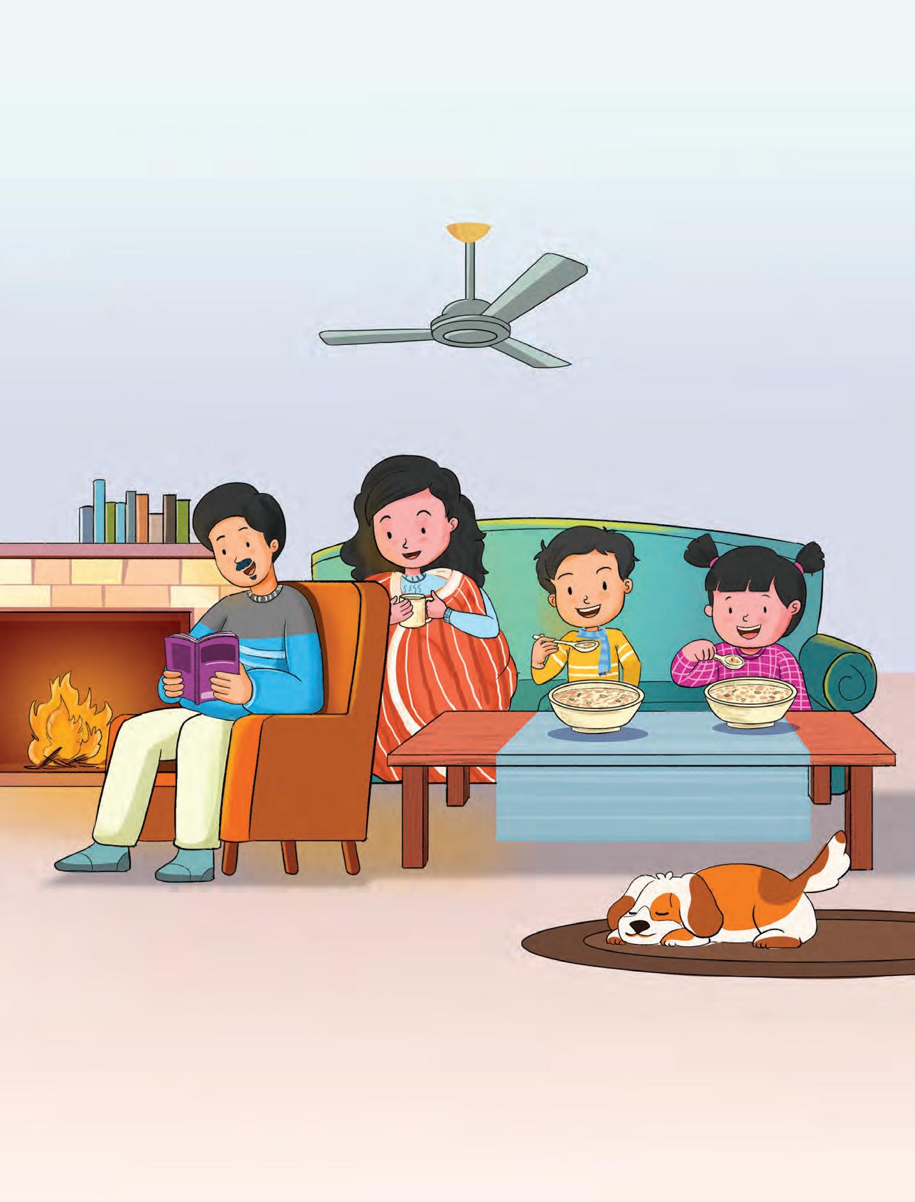 For the Teacher: Begin by asking the children to observe the bath scene and describe what they see. Ask questions such as, "What is Rohan doing?" "What does Mama ask Rohan to do, and why?" to promote vocabulary use. Encourage students to describe the scene and focus on the main message of the story. Highlight that water is a valuable resource and discuss the importance of saving it.