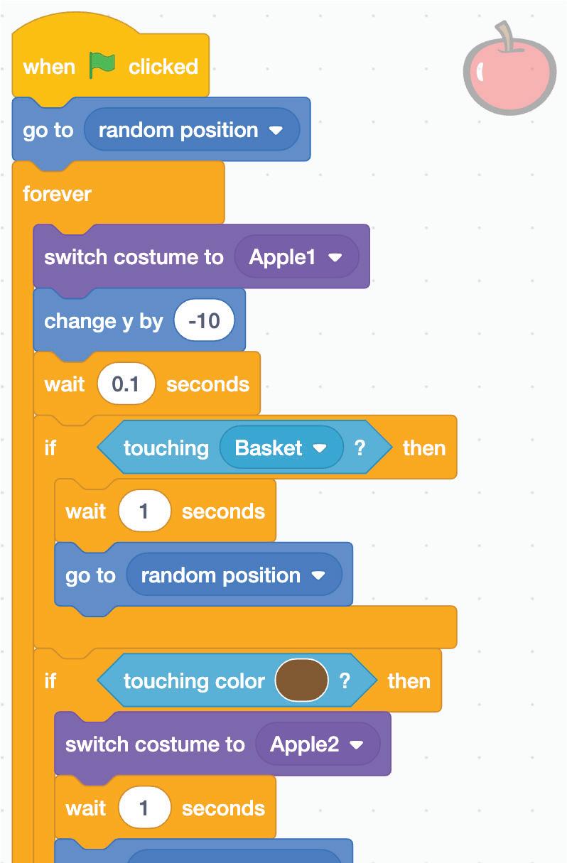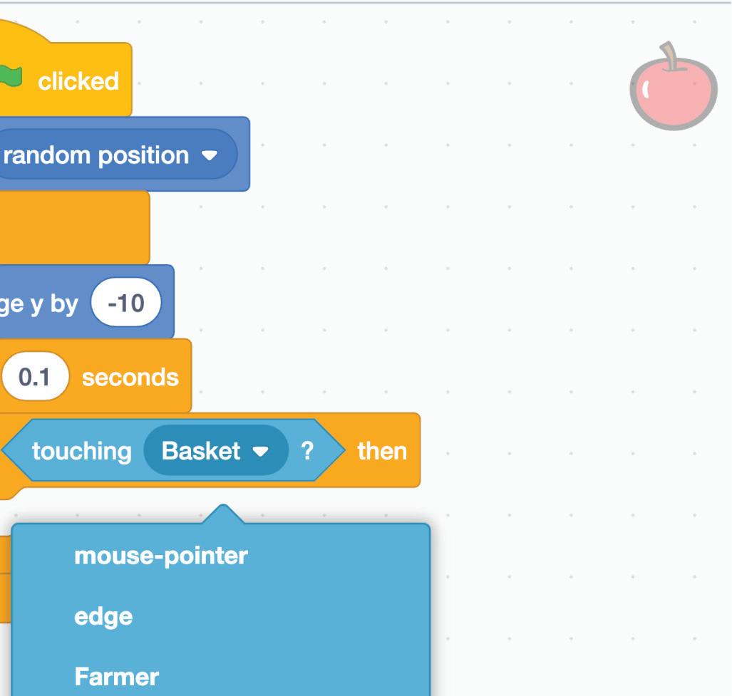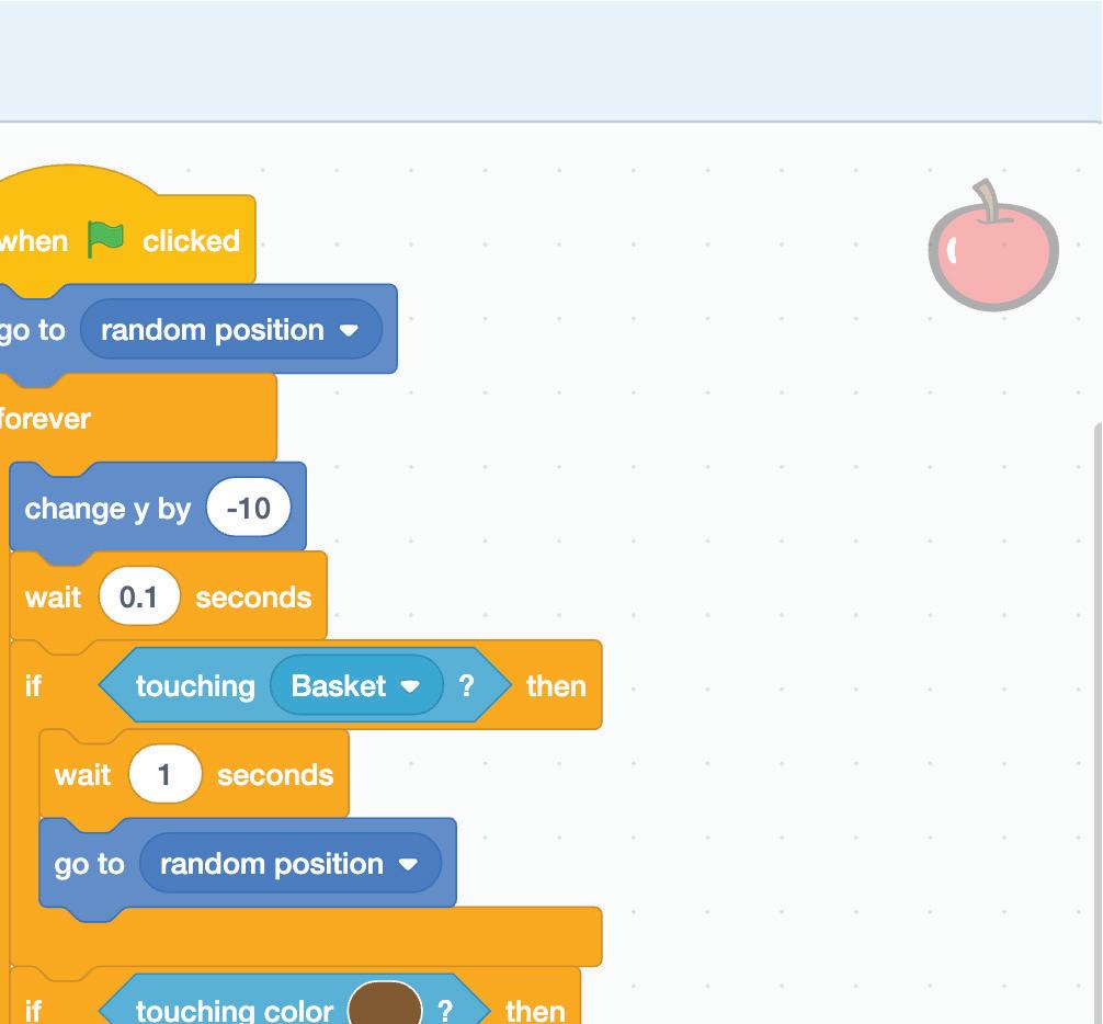 Now, let us make the Apple sprite make a sound when it is collected or falls down.