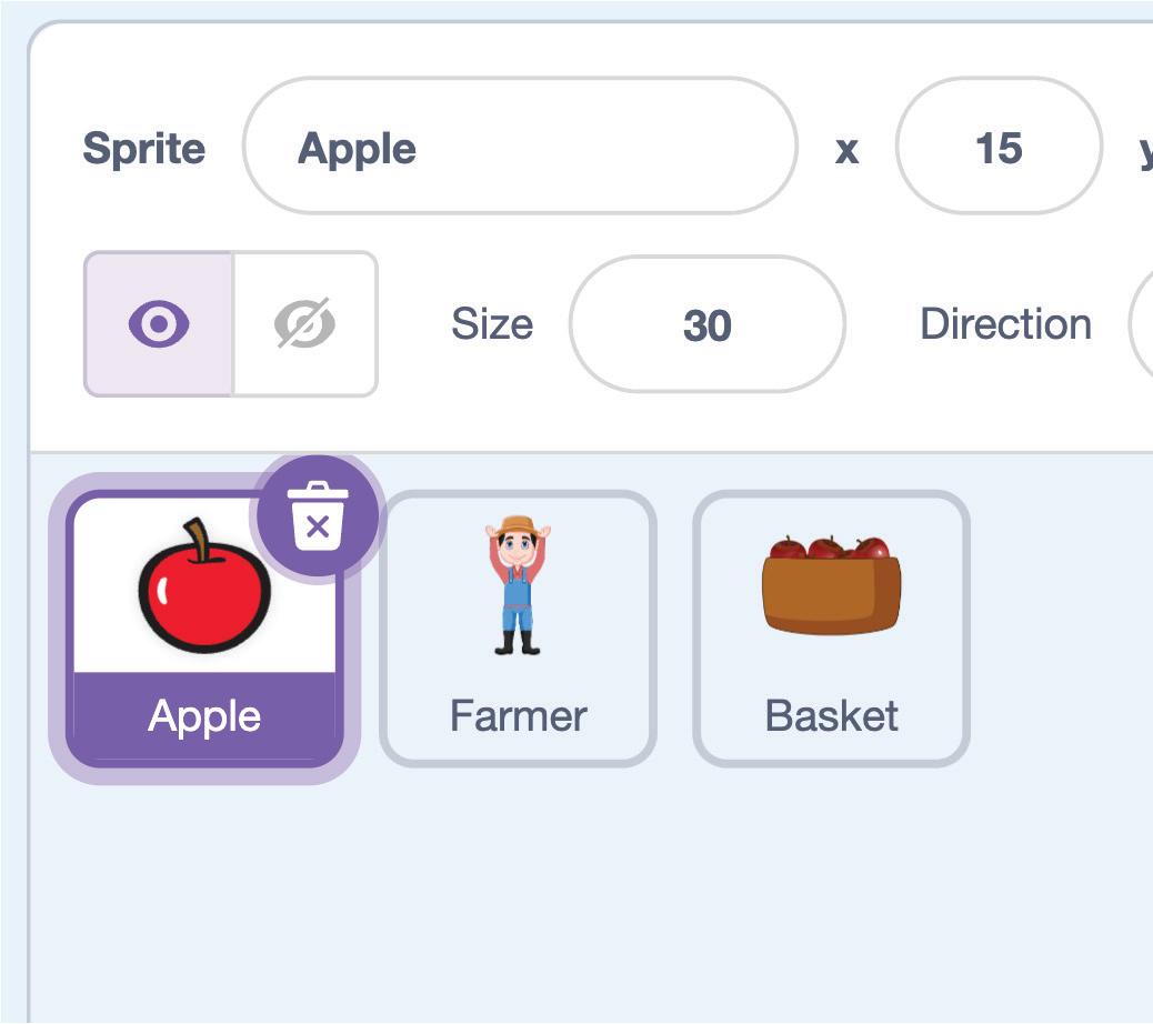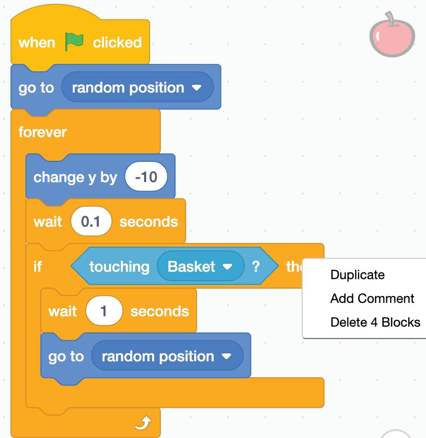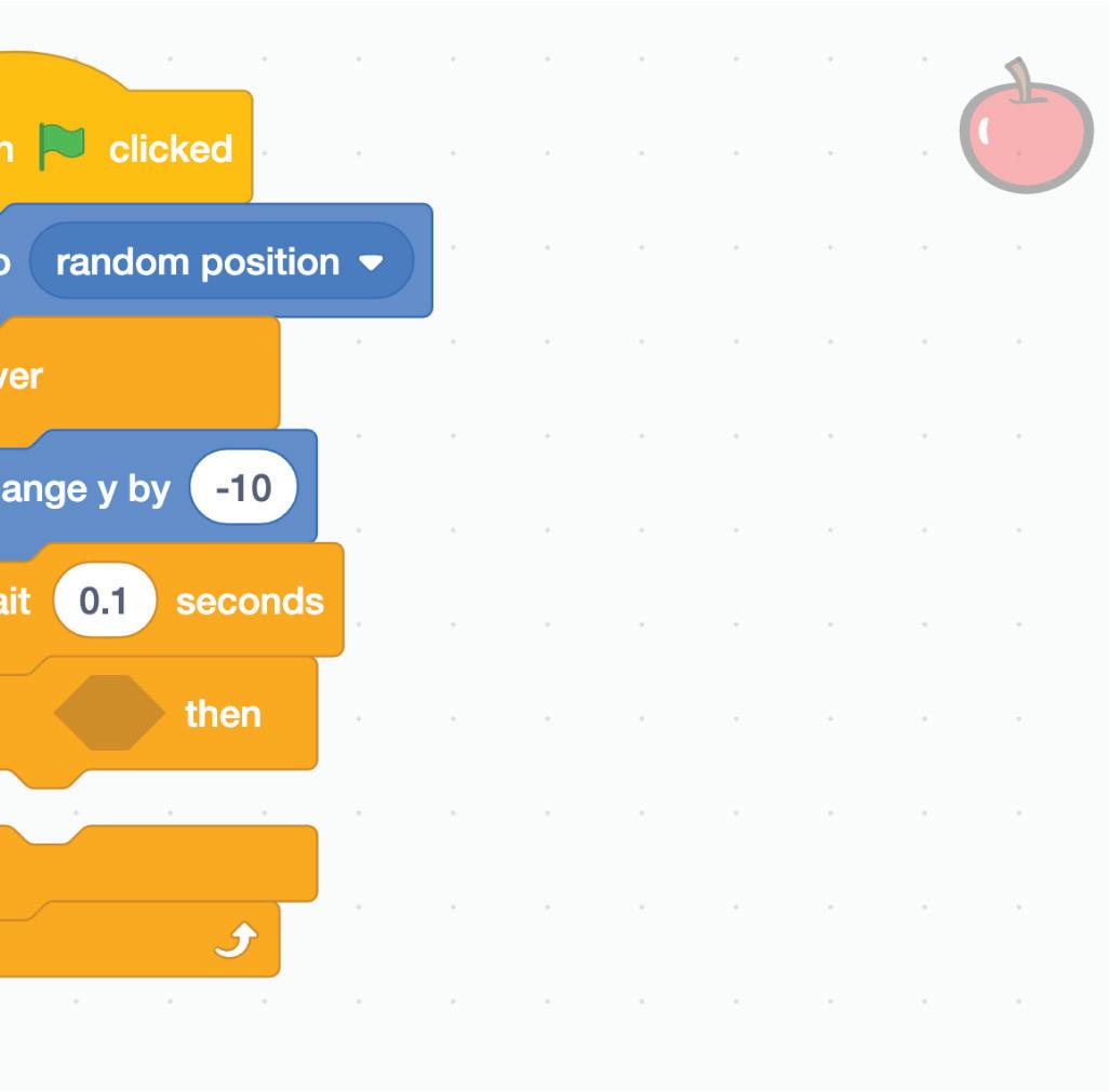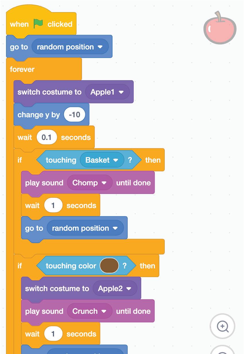 Now, let us make the Apple sprite make a sound when it is collected or falls down.