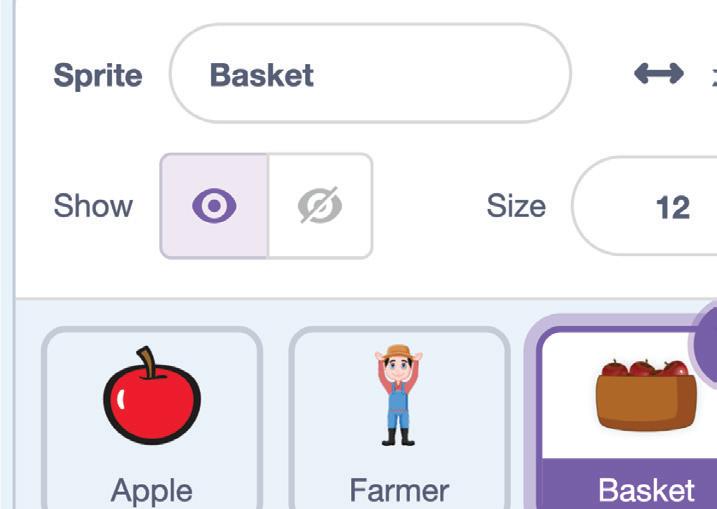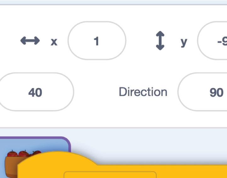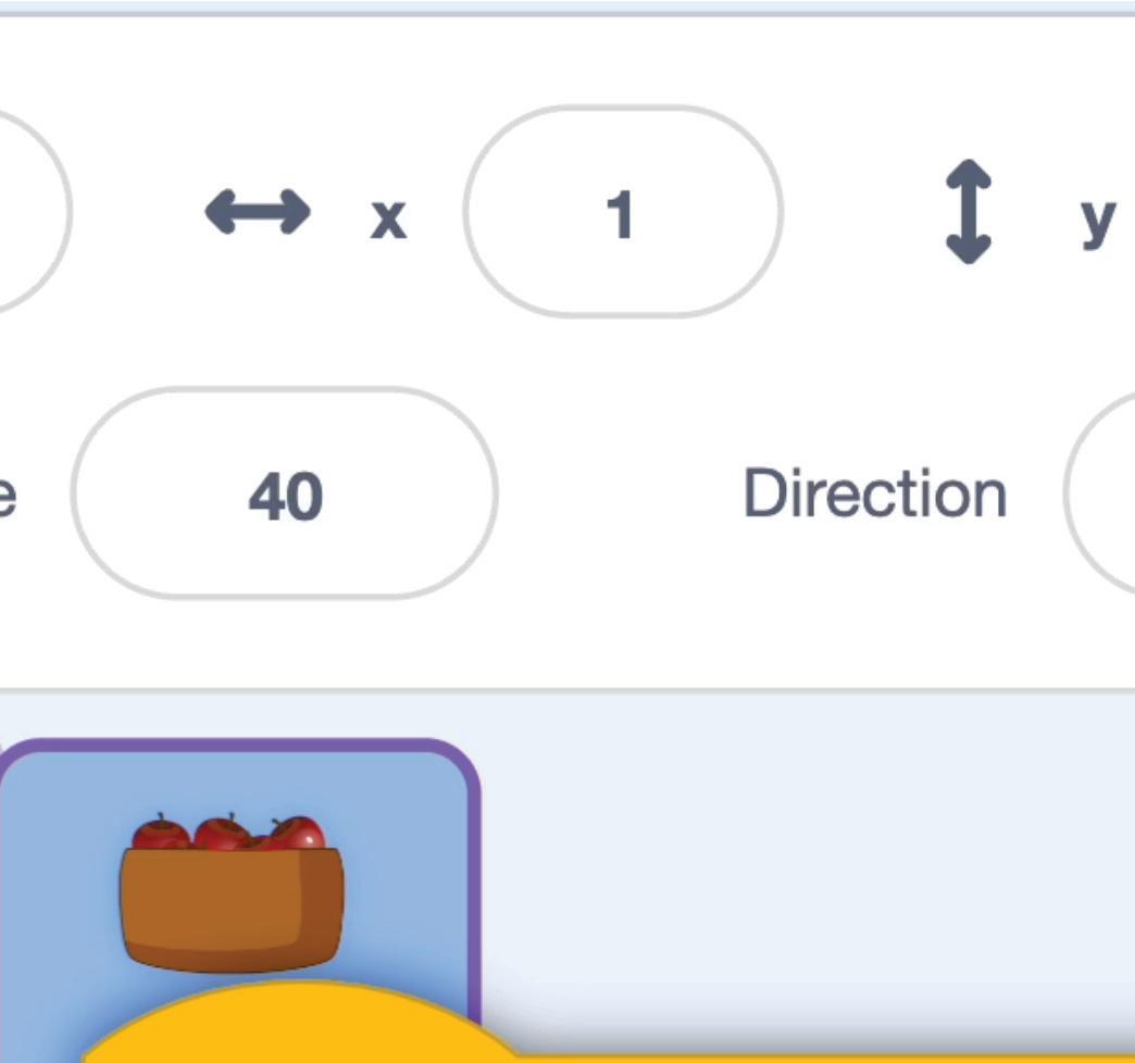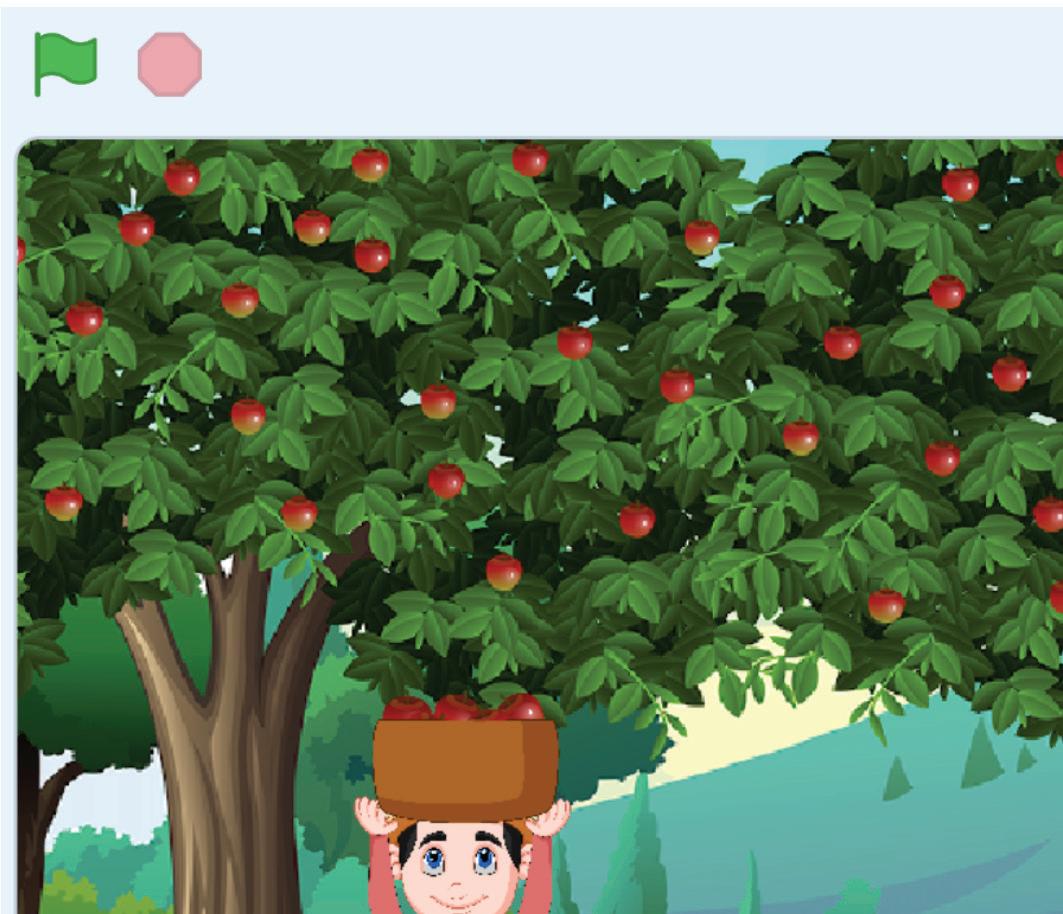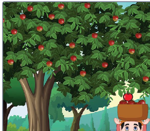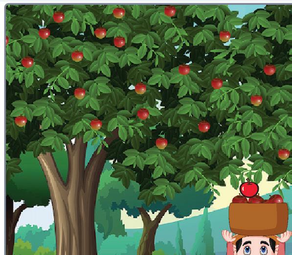 4 Change “Hello!” with “Help me collect the falling apples!” or any message of your choice.