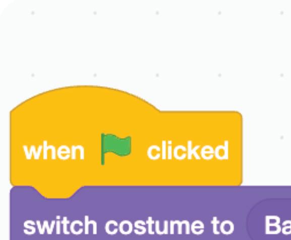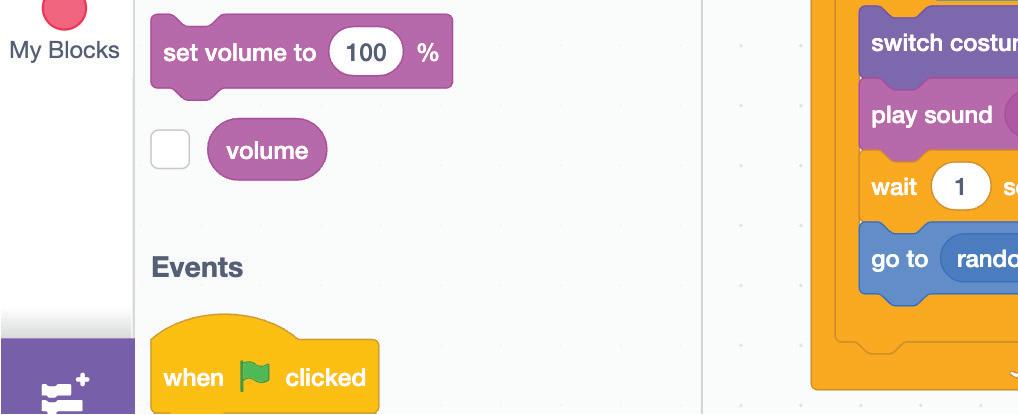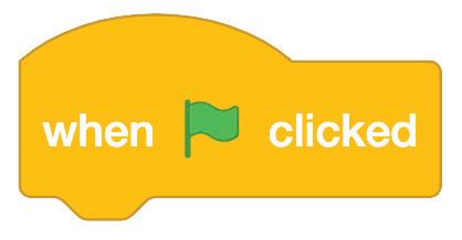 2 Drag and drop the when green flag clicked block from the Events category in the Coding Area.