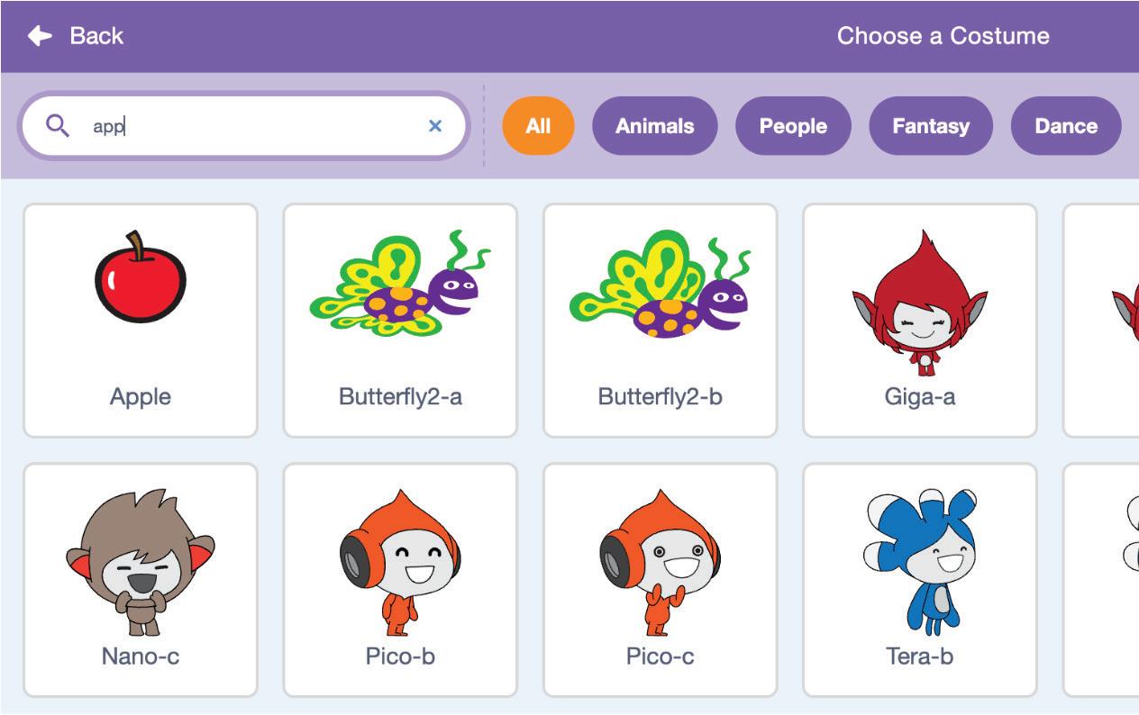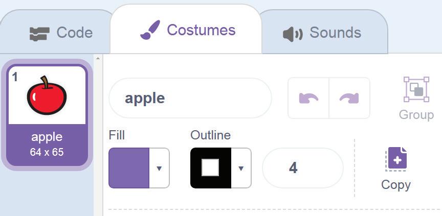 b. Costumes: This tab opens the Paint Editor window where we can change how a sprite looks.