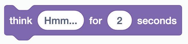 A thought bubble appears over the sprite and stays for the specified number of seconds.