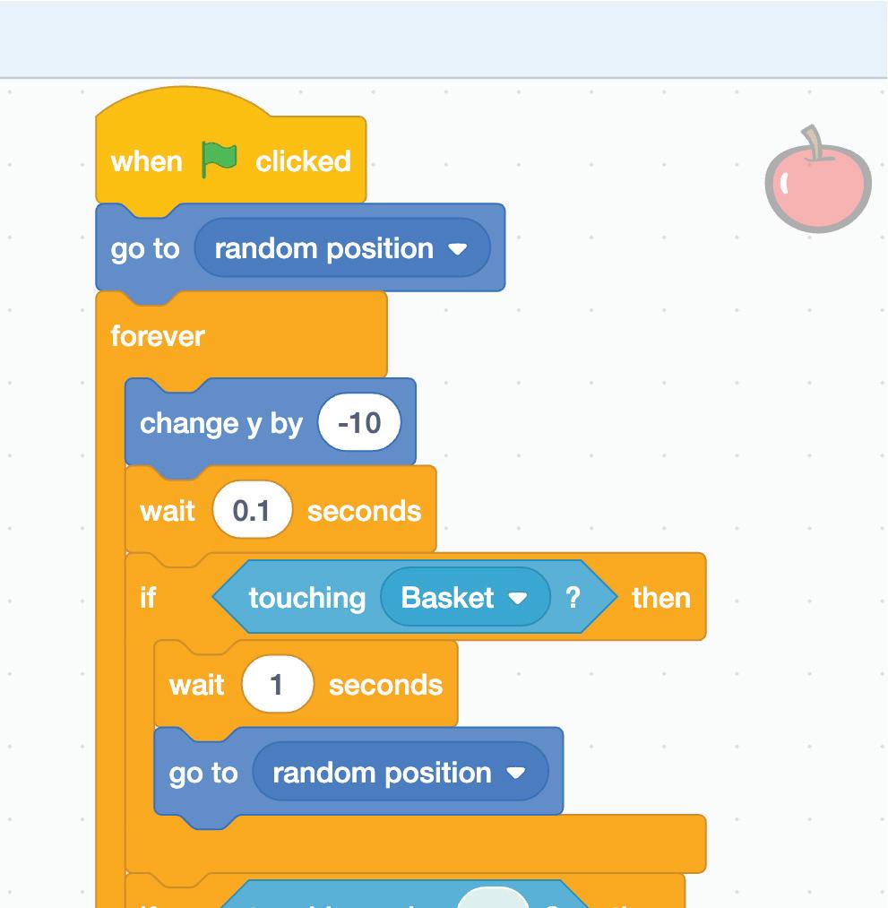 12 Change the sound to Chomp in the play sound block in the if touching Basket? block.