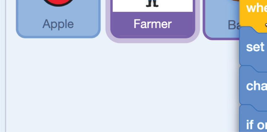 Let us code our Fruit Catcher project to make the Farmer sprite talk to us.