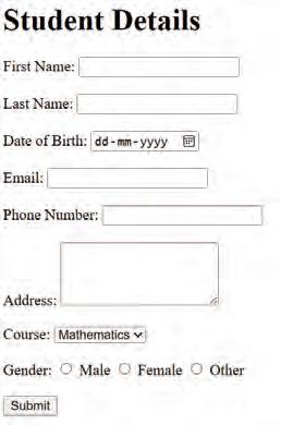 2 Imagine that you are conducting a survey about students’ favourite school subjects. Design an HTML form with radio buttons for subjects such as Mathematics, Science, History, and English. Allow the students to select their favourite subject and submit their choice.