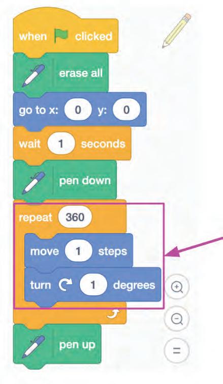 3 How many times will the move block be used to draw a circle without the repeat block?
