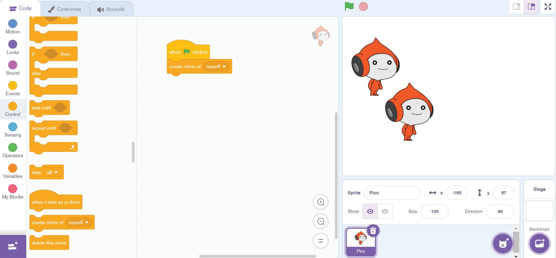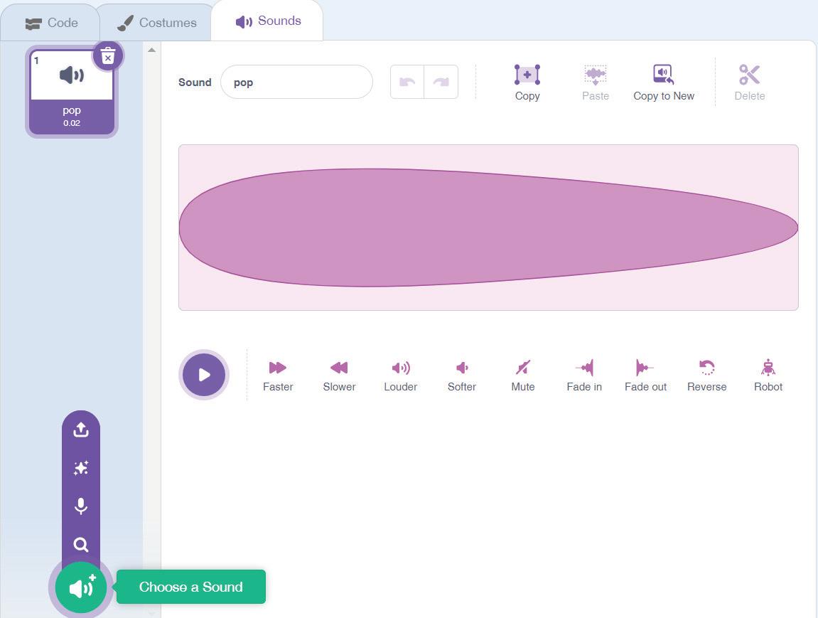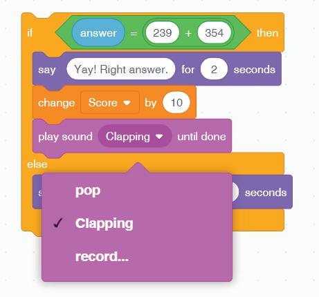 9 Drag and drop the play sound Pop until done block from the Sound category. This block plays the pop sound, by default.
