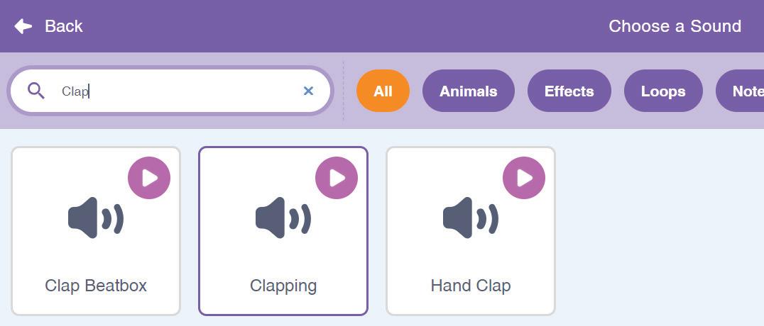 6 Add the block from the Sound category to make the sound when the sprite gets clicked.