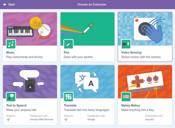 7 The Video Sensing extension is added to the blocks panel. These blocks use your webcam.