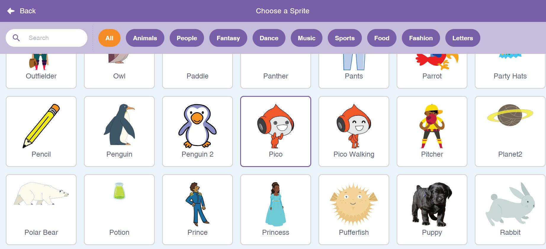 3 Now, add a sprite by clicking the Choose a Sprite option in the Sprites pane.